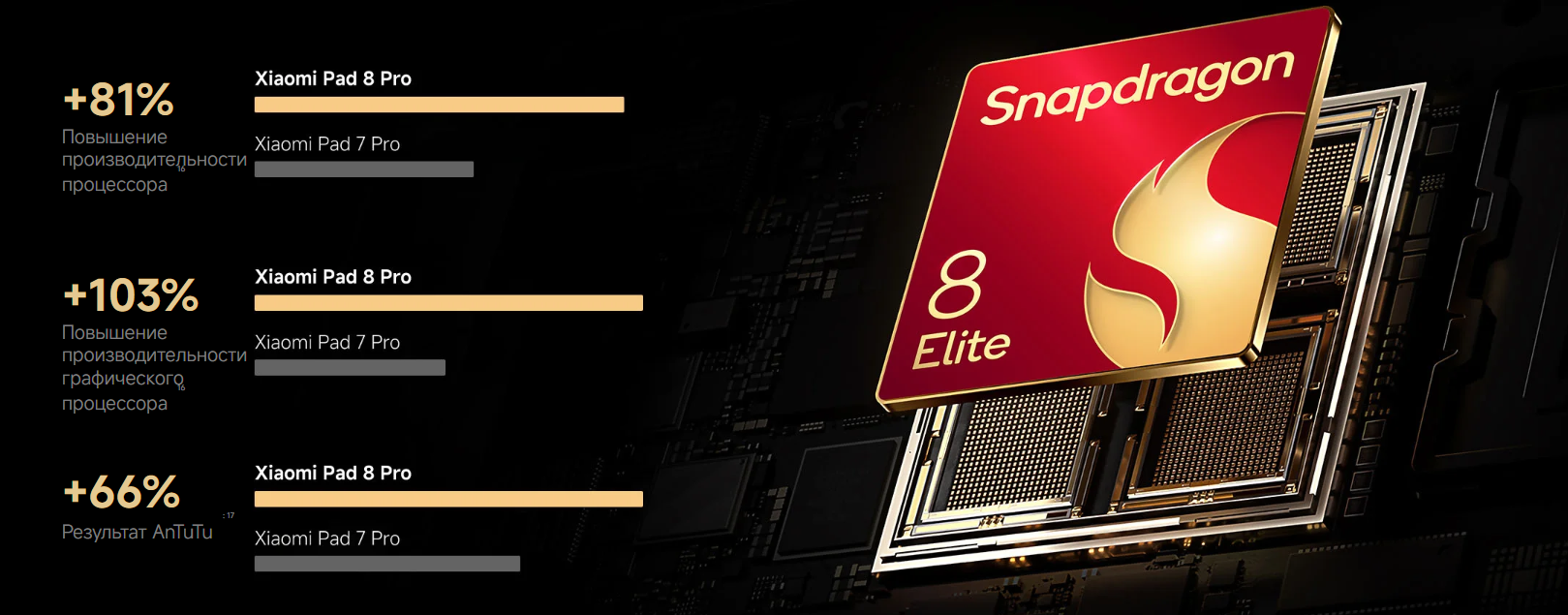 В основе Xiaomi Pad 8 Pro лежит процессор Qualcomm Snapdragon 8 Elite с восемью ядрами и частотой до 4200 МГц. В сочетании с 12 ГБ оперативной памяти планшет обеспечивает высокий уровень скорости в повседневных задачах, многозадачности, работе с тяжелыми приложениями и мультимедийном контенте. Модель подойдет тем, кто хочет получить мощное устройство с запасом производительности на будущее.