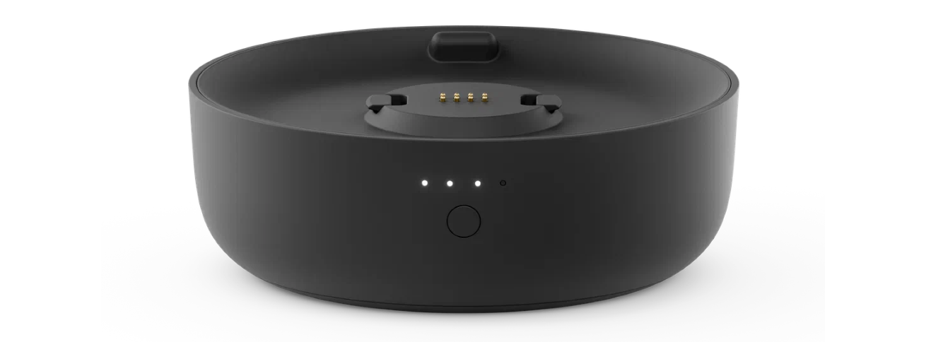 Аккумулятор крепится к станции с помощью магнитного соединения — никаких проводов, всё просто и надёжно. На корпусе есть кнопка и светодиодный индикатор, который показывает уровень заряда. Узнать оставшуюся ёмкость можно и через приложение «Дом с Алисой», либо голосом — просто спросив у ассистента: «Алиса, какой заряд?».