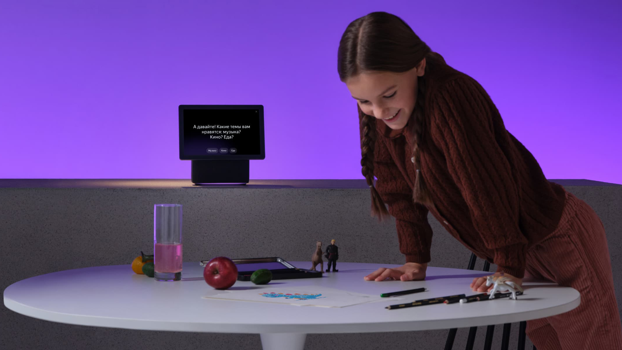 Можно попросить Алису озвучить сообщения из приложений Яндекса. Находясь вне дома, можно позвонить на умную колонку и пообщаться сразу со всеми членами семьи. С Яндекс Станцией Дуо Макс доступны и видеозвонки.